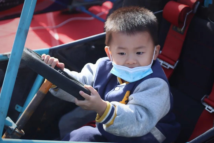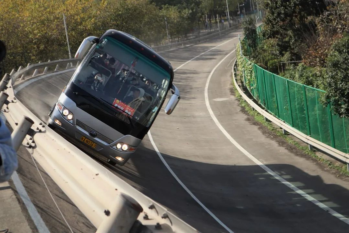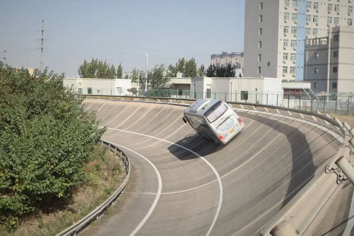 坐着大巴在环形跑道上体验飞驰的感觉……