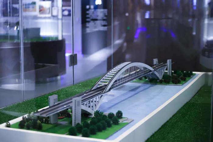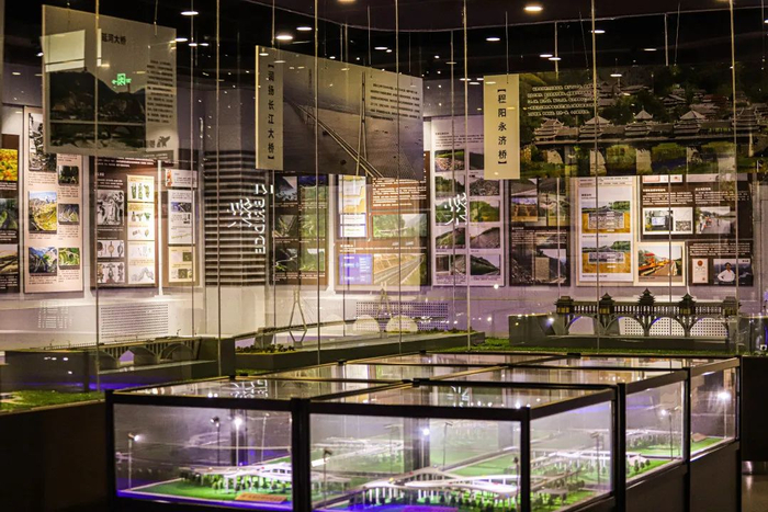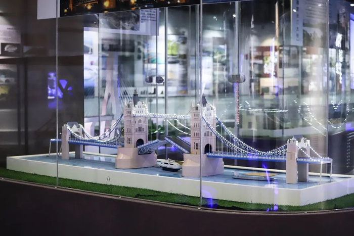 室内展区的一层主要展示了公路交通发展历史、交通文化脉络,以及学校依托专业特色在公路交通领域取得的创新研究成果。实物展示、文献资料、高仿真模型、图片信息以及视频信息等多种展示方式的综合运用,让参观者对道路、桥梁、隧道技术的历史演变、现状和未来发展有了全面而生动的了解。
