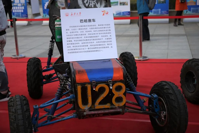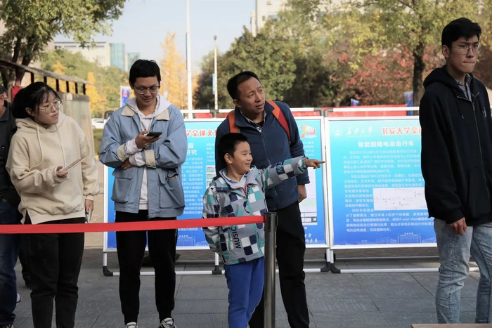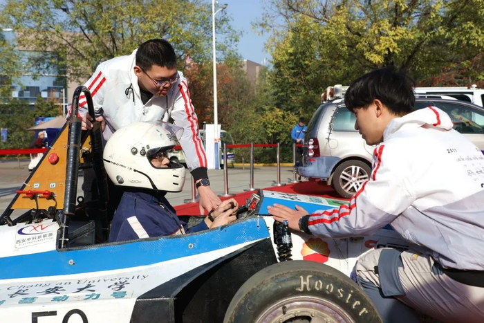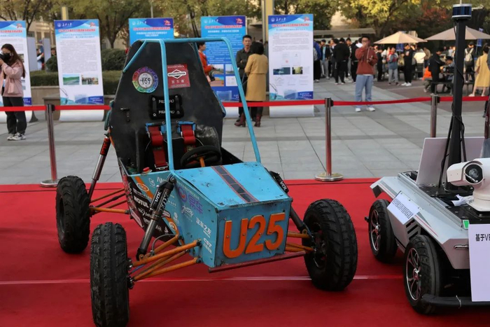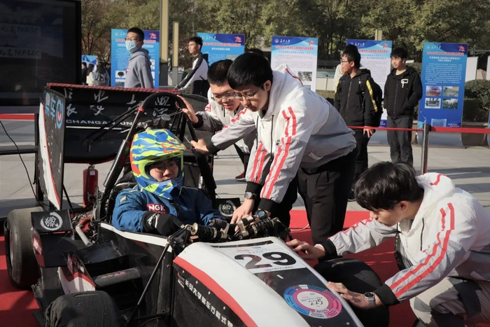 在展区旁边的道路上,一辆辆由学生自主研发的赛车缓缓驶过,引来现场参观者的围观。这些赛车作品来自长安大学FSAE赛车队。赛车队由60名在校本科生及研究生组成,队内成员来自汽车学院、机械学院、电控学院等多个学院,他们研制了燃油赛车、纯电动赛车、巴哈越野车等三类赛车,连续十年参加中国大学生方程式系列赛事。