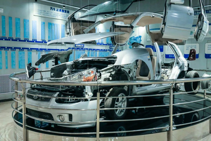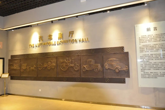 二层的汽车展厅分为前汽车时代、汽车百年、中国汽车、汽车技术、汽车文化和未来汽车六个展区,基于汽车发展历程中的重要节点,展示了一系列高仿真车辆模型和汽车实物、汽车发动机模型、解剖的吊装车等,充分体现了汽车作为现代化交通工具,在促进社会进步和人类文明中发挥的重要作用。
