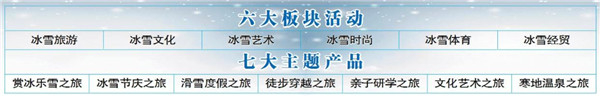 做实六大板块活动。此次冰雪季共设立“冰雪旅游”“冰雪文化”“冰雪艺术”“冰雪时尚”“冰雪体育”“冰雪经贸”六大板块400余项活动,百项重点活动包括亚布力滑雪节、采冰节、冰雪节、冰雪旅游发展论坛、光影节等节庆活动;冰雪大世界、雪博会、松花江冰雪嘉年华等景区开园式;“冬季演出季”国内外专场演出和“冰晶雪舞欢乐季”等音乐演出;国际冰雕、国际雪雕等冰雪雕赛事;冰雪婚礼、冰雪电影节、国际艺术光影节、国际时装周等时尚活动;国际冬泳公开赛、中芬越野滑雪赛等体育赛事;“冰城约世界”、寒博会、“哈尔滨冰雪侨之约”等经贸交流活动。