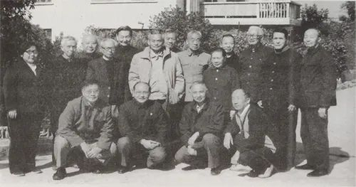 1990年冬,李清和老师们合影(一排左起:周树国、朱国伟、周继良、王富三;二排左起:邓泽珍、方为表、欧阳剑、习传裕、姚宝汉、李清、周应才、穆建国、康裕芳、衡佐善、倪文馨、管贤、胡行定)
