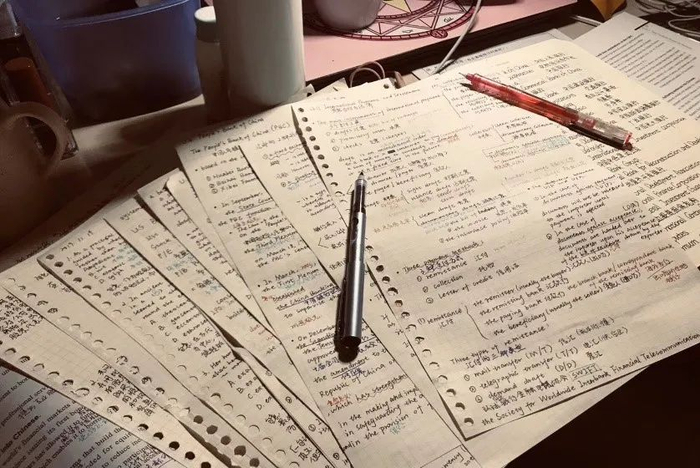 自入学以来,邵然在学习方面一直竭尽所能,虽然每到期末复习都压力山大甚至有时焦头烂额,经常是第一个来到自习室又是最后一个离开,但她说只有这种每天除了吃饭睡觉就长在自习室的感觉才能稍稍让她心安些。认真听课、整理笔记、老师答疑、及时查漏补缺、重复记忆,这五个环节贯穿整个三年,缺一不可。除了书写能力过关外,在口语方面也没少下功夫。