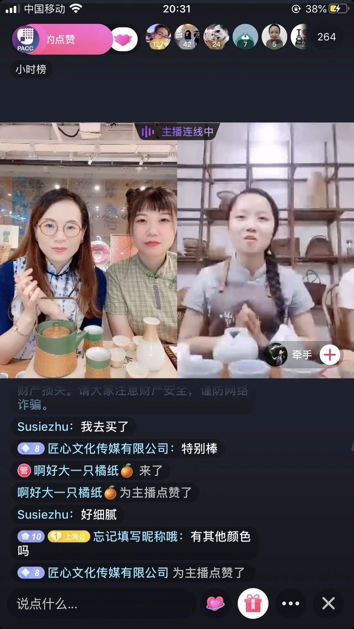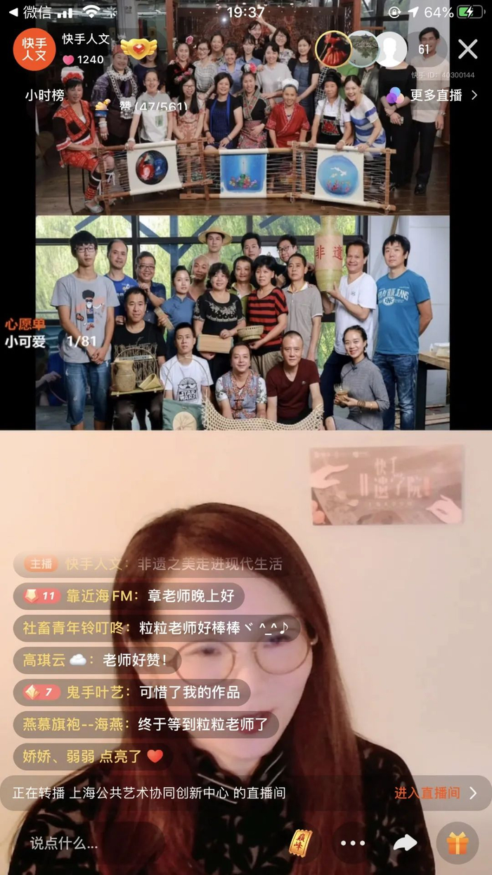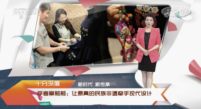 直播、短视频等新兴媒体的飞速发展,使如今的传播渠道变得更为多元、便捷,同时为非遗公共普及提供了难得的契机。章老师抓准时机,紧跟时代潮流,往日平和温柔的她,化身声情并茂的“主播”达人,向公众普及非遗跨界设计,让更多的人了解中国非遗之美。