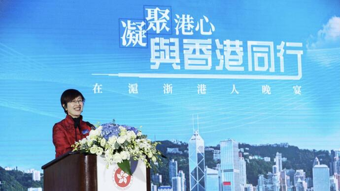 采访中,蔡亮还透露出一个重要信息——原本特首林郑月娥今年会像前两届一样来上海参加进博会,但由于疫情原因未能成行。活动现场播放了林郑月娥录制的视频,为在沪港人加油打气。“我们希望通过这次聚会,展示江浙一带港人有多团结,内地港人是香港的坚实后盾。”