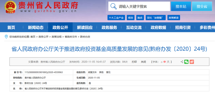贵州省政府出台意见 推进政府投资基金高质量发展