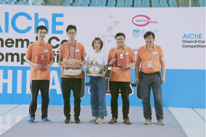 △骆茜(中)与团队参加Chem-E-Car竞赛
