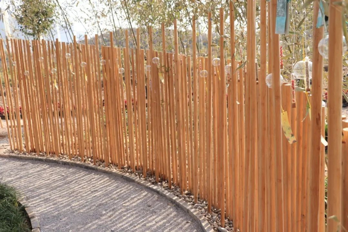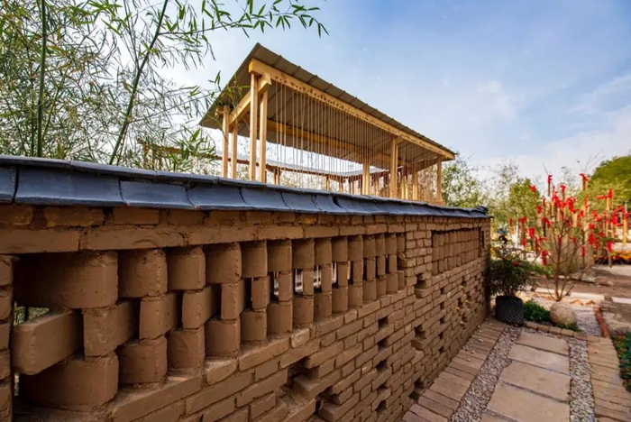 设计团队力求打造一个承载西农人点滴记忆的室外展览空间,在有限的地块内营造一个空间多变,小中见大的世界。展览空间使用了竹木棍组成墙面,穿梭的钢丝绳上悬挂着风铃和试管,其中放置着校园里的各种物体以及项目使用的各类建筑材料。当微风拂过,清脆的铃叮声响向人们讲述着西农的四季轮转。而在需要展览时,则可以悬挂图纸或其他物体,实现功能上的多样性。