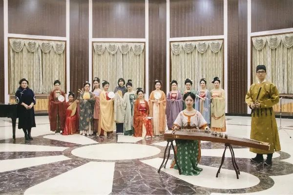 这首女声小合唱,将清亮的女高音与温厚的女中音完美的融合在一起,歌声飘渺优雅,辅以轻盈柔美的古典舞,撩人心弦的古筝,宛转悠扬的笛声,交织成一副古色古香的盛唐女子画卷。