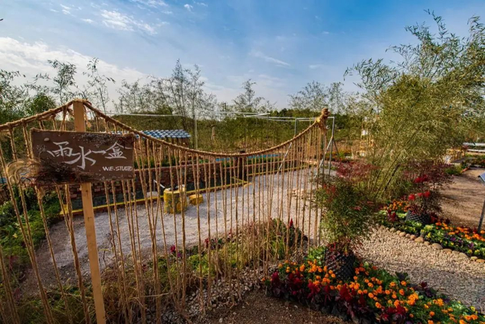 通过对雨水花园的了解,以创新的思维将整个循环过程立于地面,直观的进行感受与科普功能,在增强互动性的同时也增加了景观的趣味性。小麦的装饰使场地与周边环境更加贴切,立面上的小花,管道上的风铃,悠扬的秋千,无不使人在这小小的盒子里找到内心的欢愉与宁静。