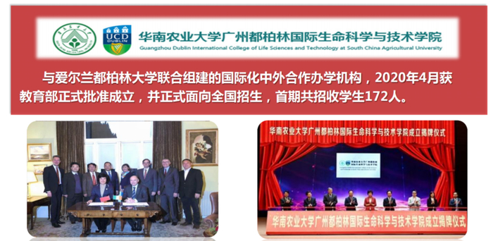 在国际交流与合作方面:与34个国家和地区的108所大学及研究机构建立合作关系。新增2个高等学校学科创新引智基地,获批我校首个中外合作办学机构“华南农业大学广州都柏林国际生命科学与技术学院”并正式招生。