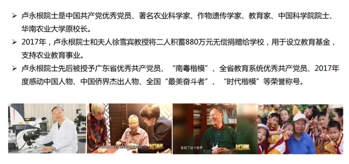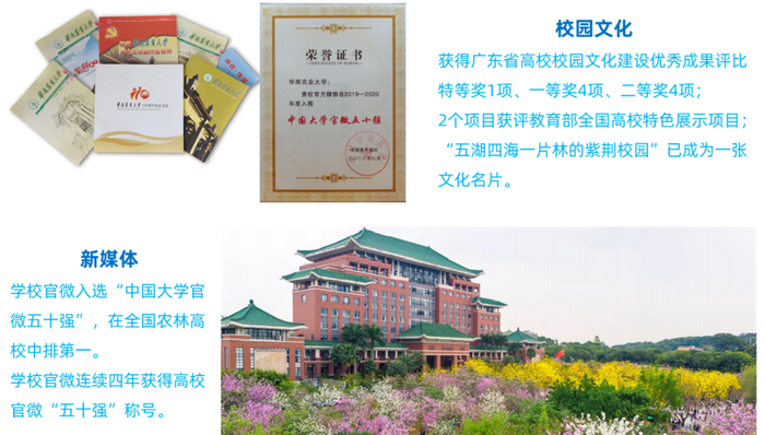 在文化传承方面:感动中国人物、最美奋斗者、时代楷模卢永根院士先进事迹传为佳话;获得广东省高校校园文化建设优秀成果评比特等奖1项、一等奖4项;2个项目获评教育部全国高校特色展示项目;“五湖四海一片林的紫荆校园”已成为一张文化名片。
