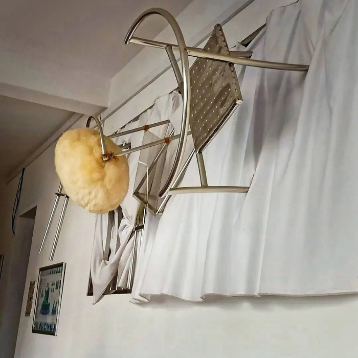 倒挂于墙上的工艺铁凳