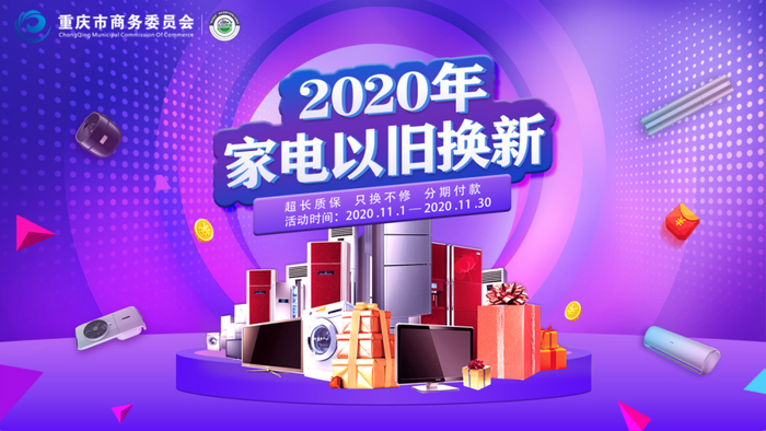 按照2020年“百城万企促消费”全国消费促进月“爱尚重庆”金秋消费季“惠生活”主题促销安排,充分利用“双11”等促销活动时机,重庆市商务委员会继续联动3家大型综合家电销售企业,开展家电以旧换新惠民活动。