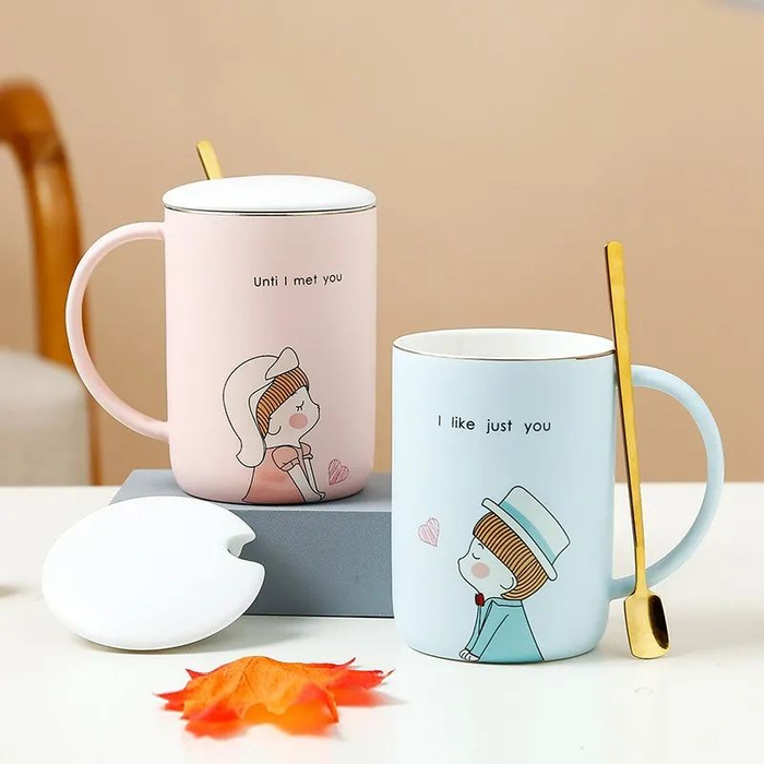 “重百创客”推荐这款陶瓷水杯给你,该款是情侣对杯礼盒装,可爱温馨,送礼好选择。可装咖啡、牛奶、果汁等饮品,居家日常或在办公室都能使用。