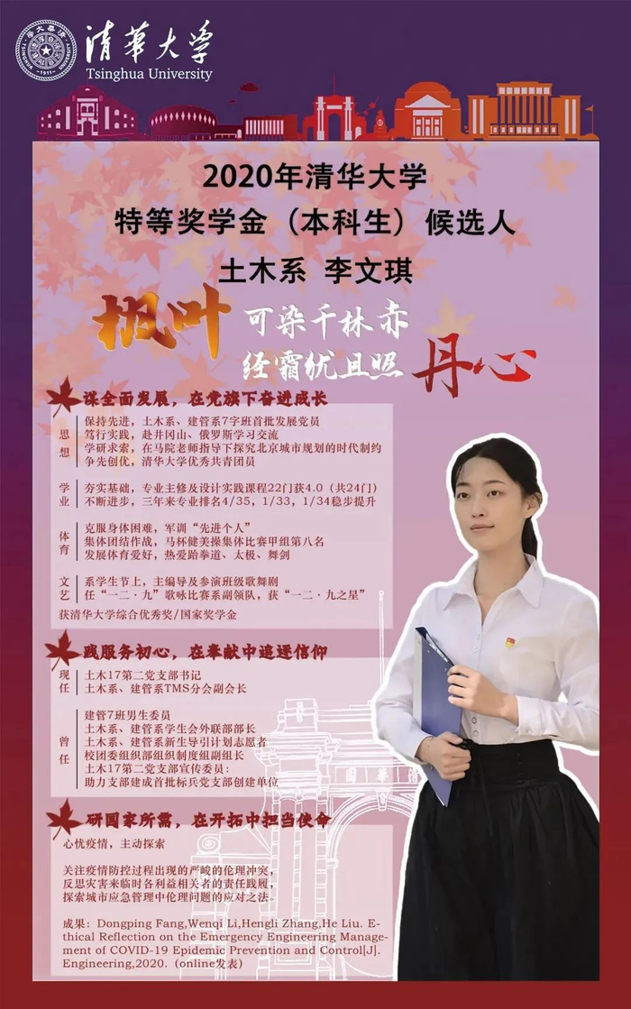 清华大学特等奖学金于1989年设立,是学校授予在校学生的最高荣誉。今年是特等奖学金评选办法修订后实施的第二年,在以往评选的基础上,学校一方面强调以德为先,引导和培育优良的学风,另一方面也严格评审的流程,充分发挥公示环节的监督作用,希望特等奖学金的获得者,能够充分地体现清华人肩负使命、追求卓越的勇气和担当。