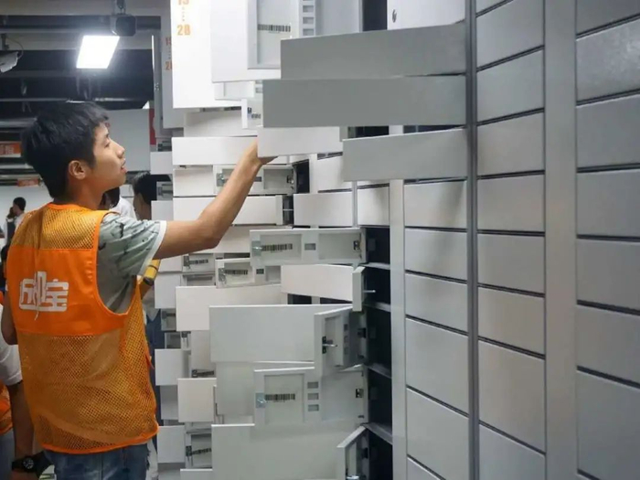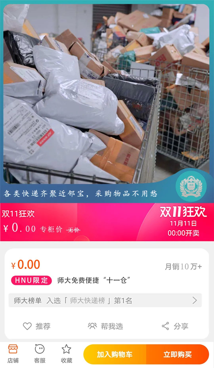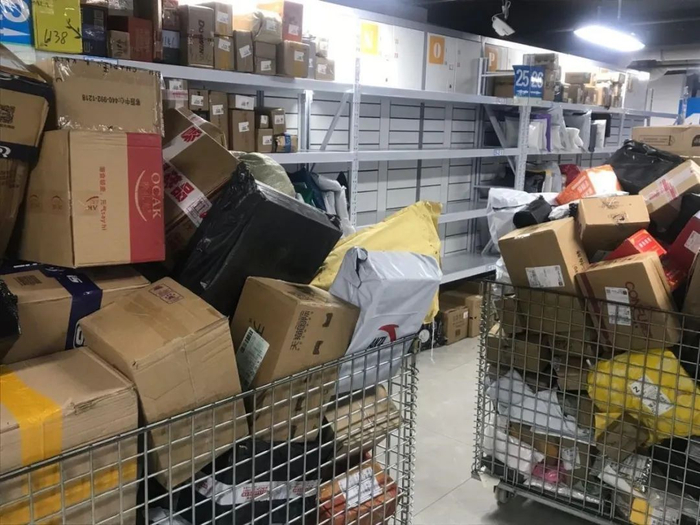 每一位师大人的快件都被标上号码,整齐地排列在货架上;近邻宝的“一键开箱”功能,省时省力;校园内新增多处临时货架,井然有序,方便快捷。小小驿站,聚集着我们取包裹的期待与欣喜!