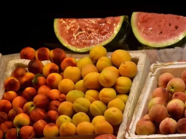 水果种类繁多,有香脆酸甜的冬枣,晶莹剔透的青提,艳红如唇的蜜柚,多肉鲜甜的粉桃等等。晚上下课后,掂着一袋水果回到寝室,香甜又营养。品尝过新鲜美味的水果后,坏心情也随之烟消云散啦!