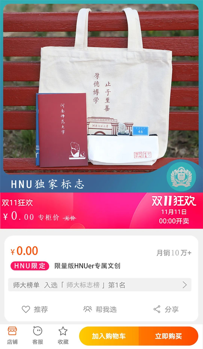 印有西区校门的帆布袋,承载了我们对师大的浓浓情思;精美的笔记本和帆布袋,装载了我们“厚德博学,止于至善”的信仰;校训石徽章和建设东路46号钥匙链,是师大近百年历史的缩影。这每一份产品,都是我们和师大紧密联系的见证。宝贝评价