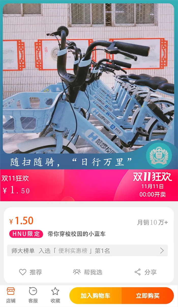 师大人都亲切地称呼它为“小蓝”。蹬着蓝色的自行车穿梭在校园里,路边的风穿过头发。它在争分夺秒时助你一臂之力,伴随你走过每一条路。随扫随骑,为我们提供最便利的服务。宝贝评价