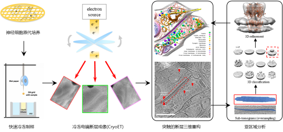 图1.冷冻电镜断层原位成像技术解析神经突触受体蛋白原位结构与组织分布