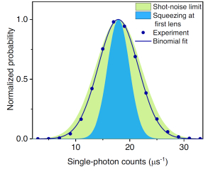 中科大研究组长期致力于发展高品质的单光子源,首创了脉冲共振荧光方法,利用微腔耦合提高单光子提取效率。2019年,研究组成功解决单光子由于极化损耗而至少损失50%的科学难题。在此基础上,研究小组发展了高品质单光子源,通过对共振荧光的直接测量,证明了0.59 dB的强度压缩,在第一物镜处的压缩量达到3.29 dB。这是自从2000年实现量子点单光子源后,科学家通过20年的努力首次在该体系直接观测到强度压缩,为基于单光子源的无条件超越经典极限的精密测量奠定了科学基础,也为在极低光功率下定义发光强度坎德拉这一基本国际单位提供了一条新的途径。