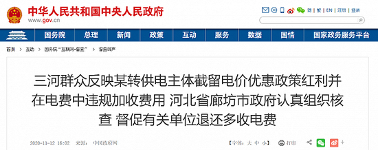 原标题:河北三河群众反映电费中被违规加收费用,官方:情况属实,责令退还多收电费并罚款