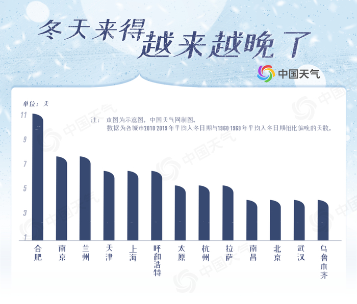 我国幅员辽阔,因此各地入冬的时间也相差悬殊。一般9月份,冬季就会在黑龙江、内蒙古、新疆、青海等地“崭露头角”;10月份,冬季疆土迅速扩张,东北、西北、青藏高原以及华北北部等地都会陆续入冬;11月份,冬季范围进一步南扩至长江沿线;到了12月份,冬季前沿抵达最南端——云南中部到华南北部一线,范围也在此时达到鼎盛。而对于华南大部地区的人们来说,冬季更多的时候只是一种传说,毕竟,他们太“南”了。