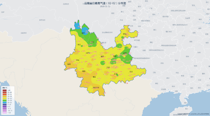 11月11日,滇西北的香格里拉、德钦、朱张白天最高气温仅10℃出头,与之形成鲜明反差的是滇西南、滇南的元江、元阳、景洪等地,似乎还在“沉浸”在夏天当中,最高气温甚至接近了30℃。