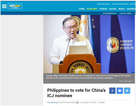 《菲律宾星报》:菲律宾将投票支持来自中国的国际法院法官候选人