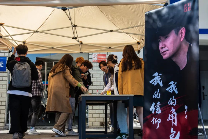 周三中午,汇贤大讲堂放票活动在大学生活动中心门口进行,大家早早排起了长队,有序报名。