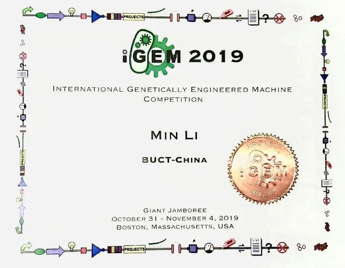 2019年11月,王彦立获得“北京化工大学国庆七十周年群众游行和志愿服务先进个人”称号,与此同时,赵然、李敏作为小组成员代表学校前往美国参加2019iGEM国际基因工程大赛,团队斩获铜奖。