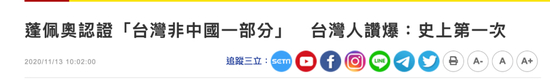 台湾联合新闻称,不要只听到蓬佩奥说“台湾并非中国的一部分”,也要听听他下一句“从里根政府以来就是如此”。
