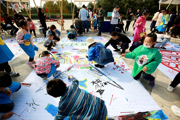 活动中,参与家庭还制作了巨幅非遗画卷。在近100平米的巨幅画卷上,孩子和家长们尽情挥洒,描绘出了中国结、纸鸢、剪纸等非遗形象,留下最珍贵的非遗回忆的同时,也让少年儿童深刻体会到文化传承的意义。