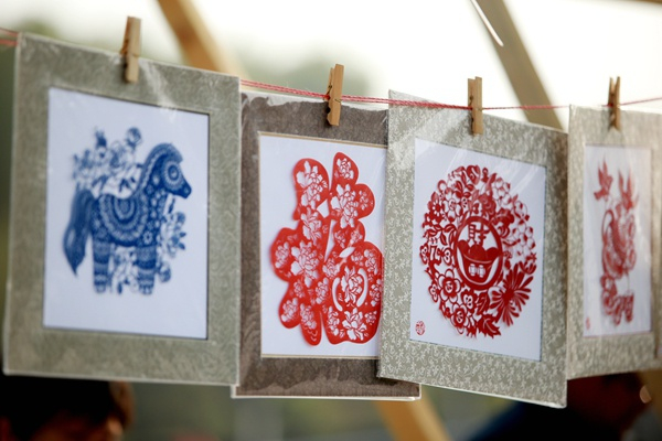活动现场,喜气洋洋的南京剪纸得到小朋友们的喜爱,镂空艺术在视觉上给人以透空的感觉和艺术享受和无限的想象空间。旧时南京人婚嫁喜庆,多聘请艺人来家用大红纸剪各式喜花,缀于箱、柜、被、枕等嫁妆之上,其它如斗香花、鞋花、门笺等品种,都具有鲜明的地方特色。