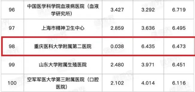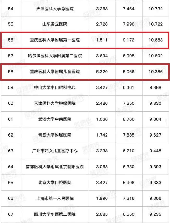 重医三所附属医院连续9年入选中国医院排行榜百强!