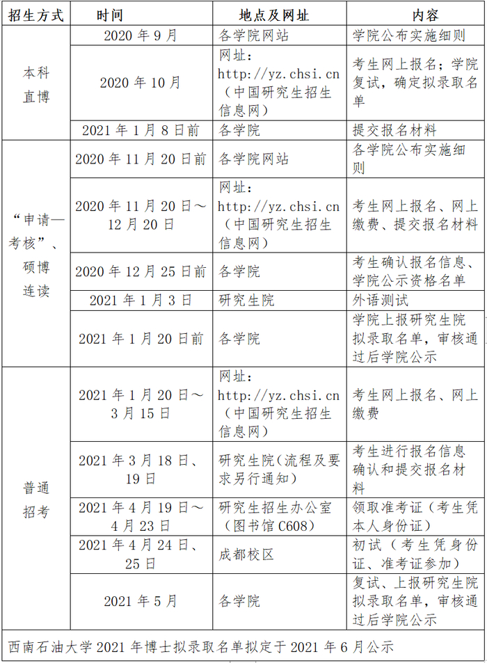 权威发布 | 西南石油大学2021年博士研究生招生章程