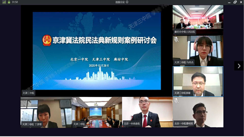 近日,北京一中院、天津三中院、廊坊中院联合举办《民法典》新规则法律适用案例研讨会。本次研讨利用互联网视频会议系统,采取视频连线形式,在三地设分会场,共有来自三地法院共18位民事审判领域法官参加此次研讨会。