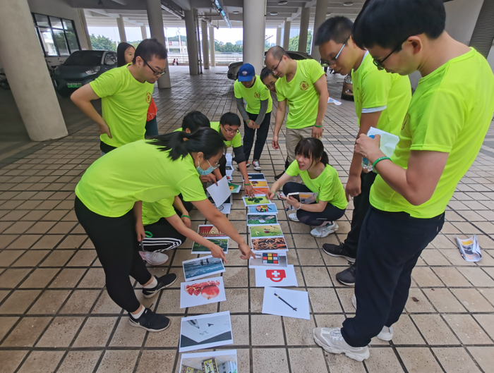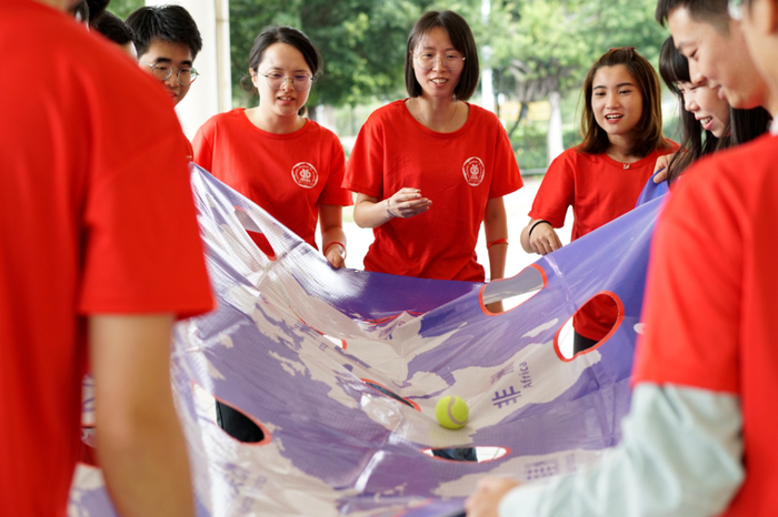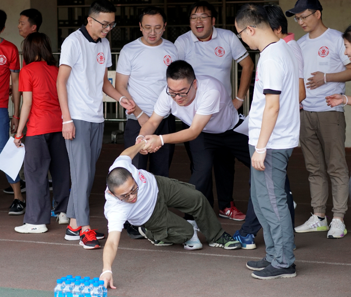团建素拓环节中,老师们分成红蓝绿黄白五组,在训练教官的指导下,完成了“破冰起航”“摸石头过河”“一穿到底”“世界球”“赢在执行”“极速60”和“趣味定向”等团建素拓任务。老师们团队合作、协同配合、突破自我、全情投入的五色身影,成为当天学校体育场上靓丽的风景。团建素拓活动,快速拉近了新老师间的距离,树立了团队合作意识,增强了新教工对学校的归属感和集体荣誉感。