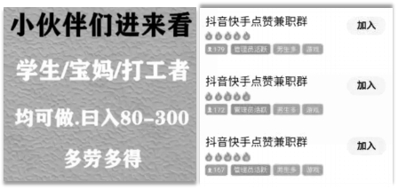 第一步:抛出如“居家打字录入,轻松日收百元”“一个点赞既可提现1-3元”实现便捷、零投入零风险、快回报高收益的噱头诱饵。