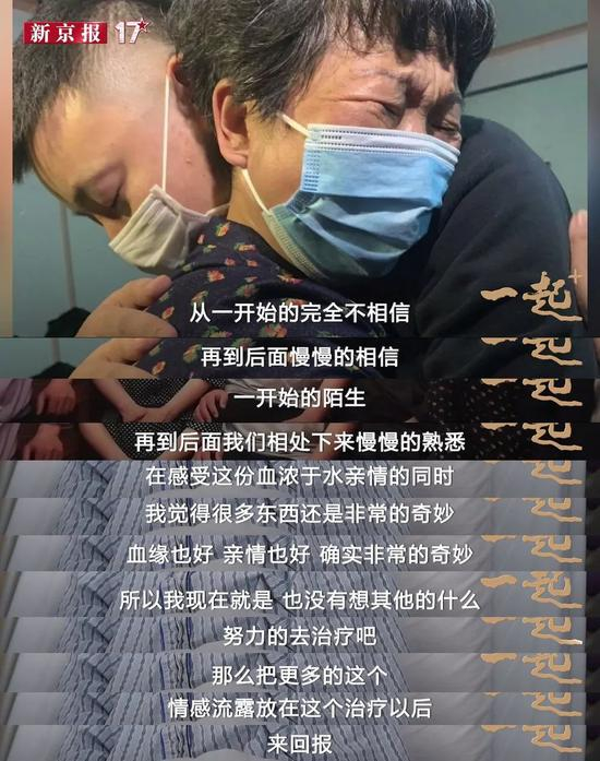 血缘也好,亲情也好,是非常奇妙的。姚策说,在感受这份血浓于水的亲情的同时,就是努力去治疗,把更多情感流露放在治疗以后,再来回报。