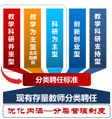 学校制定了《关于完善教师岗位分类管理实施办法》,设置了5种教师岗位类型,实行分类考核、分类评价,打破身份固化,破除人才流动障碍,引导人才在不同类型岗位之间合理流动,让具有不同特长的教师各就其位、各展其长。