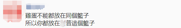 对于蔡英文“鸡蛋不能都放在同个篮子”的说辞,有岛内网友讽刺称,“是啊!!! 嘴硬。篮子都没了,只剩台商一双手跟小英一张嘴!!!!”↓