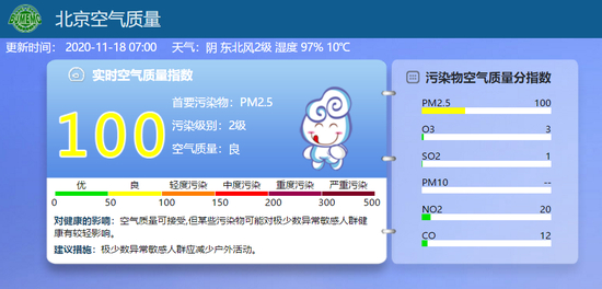 据北京市生态环境监测中心发布,18日早7时,全市北京市实时空气质量指数100,首要污染物为PM2.5,空气质量好转至二级良水平。