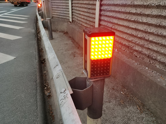 公路行车安全智能保障系统,全称“公路行车安全智能诱导及防撞预警系统”。该系统目前安装在S32的16k-18k间双方向护拦上。这段区域东北侧是S2沪芦高速出口,该出口至S32的18k处为一段坡道路面,周边又是空旷的农田区域,经常突发团雾,加之缺乏有效的照明系统,导致车辆追尾等交通事故易发。这一路段也因此成为浦东交警支队高速大队事故防范的重点区域。