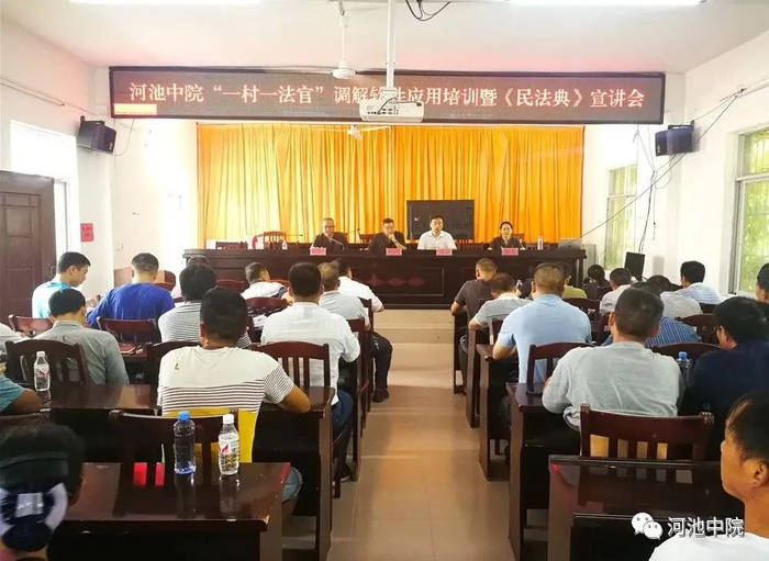 我是1993年到法院工作,当时河池地区有11个基层法院,统一由地方政府划一块地、几间破瓦房作为办公地点,与检察院、公安、司法部门合在一起办公。基础设施比较差,整个法院只有一两辆摩托、一辆吉普车,出去办案大多靠步行,信息传递靠邮寄信件;法院人员构成也是由行政部门、政府部门、部队调来工作的。