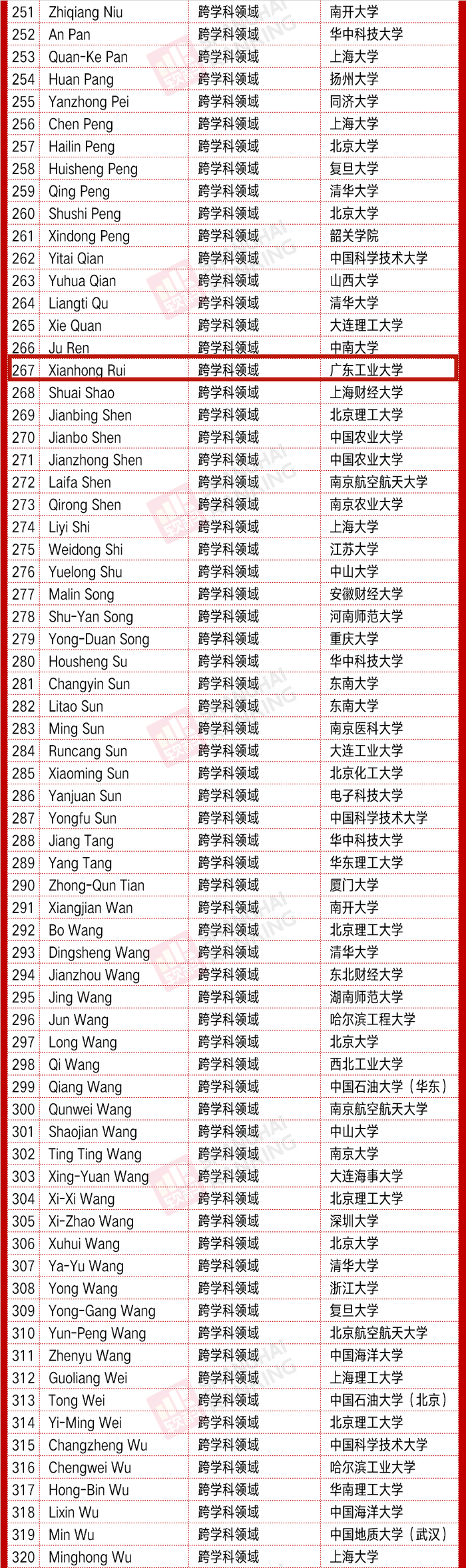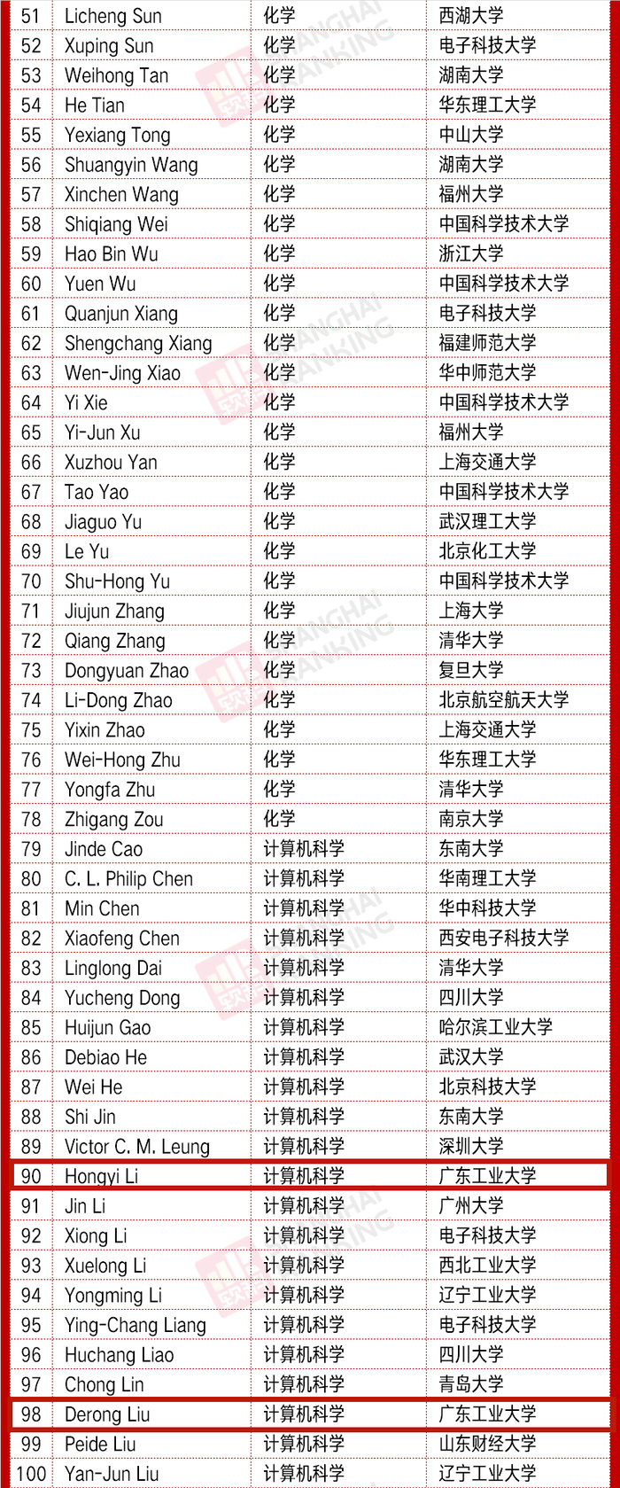 广工入选的学者主要来自计算机学科、工程学科、跨学科领域,分别是:李鸿一(2次)、刘德荣、刘治、芮先宏、谢胜利、鲁仁全、周琪。