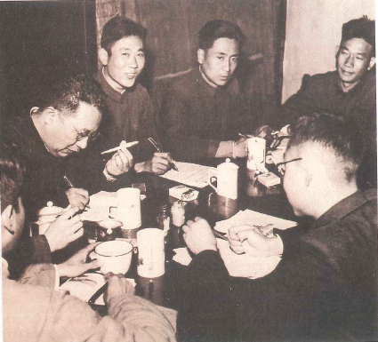 1957年5月,费孝通在开弦弓村考察时与合作社青年干部在一起