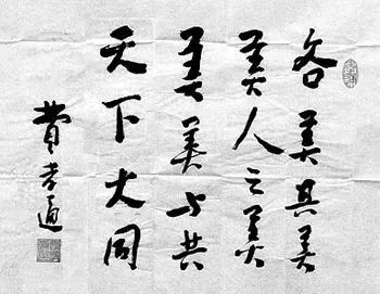 费孝通认为“文化自觉是一个艰巨的过程”,首先要认识自己的文化,其次是理解所接触的文化,取其精华,去其糟粕,加以吸收。在各种文化都自觉之后,这个文化多元的世界才能在相互融合中出现一个具有共同认可的基本秩序和形成一套各种文化的和平共处、各抒所长、联手发展的共同守则。