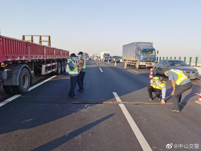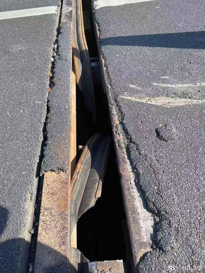 男子把千斤顶当警示牌致连环车祸?交警辟谣:实为桥梁伸缩缝损坏